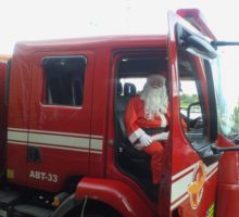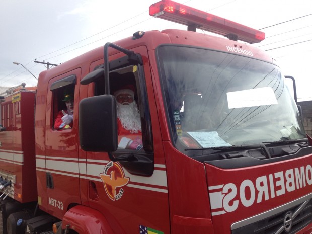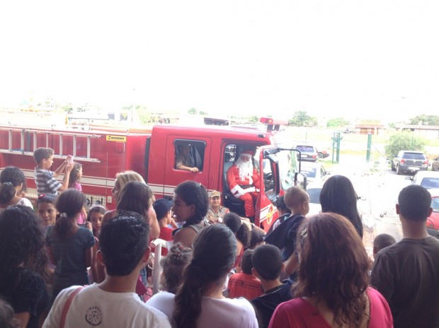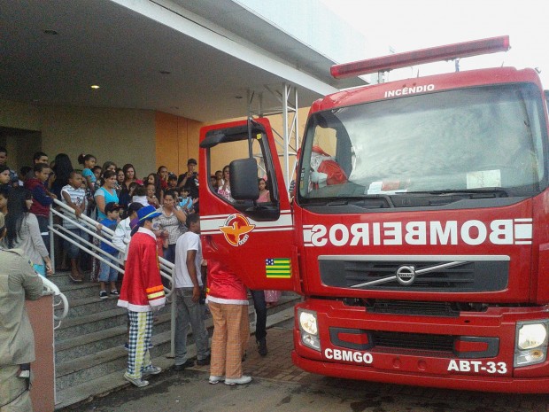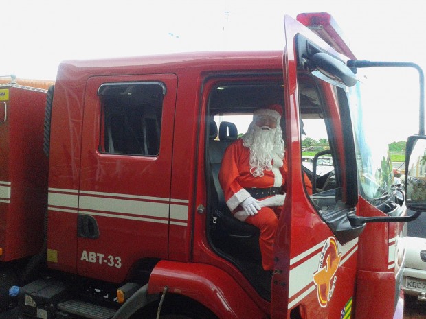 Papai Noel trocou o trenó e suas renas por um caminhão de combate a incêndio do Corpo de Bombeiros Militar do Estado de Goiás (CBMGO). A cena inusitada foi presenciada por centenas de crianças que esperavam no sábado, dia 30, a chegada do bom velhinho no Portal Sul Shopping. A bordo do ABT-33, do 2º BBM, o Papai Noel chegou no evento festivo distribuindo cumprimentos. A guarnição que acompanhou o evento foi formada pelos 3º Sargentos Adriano e Pedroso e pelos Cabos Braga e Marcos Henrique. Para os militares, foi um privilégio fazer parte do mundo mágico e da alegria vivenciada pelos pequenos, em sua maioria, moradores dos bairros Buriti Sereno, Garavelo e Jardim Itaipu. Confira fotos: