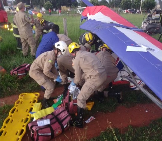 Bombeiros do 2°BBM foram acionados no final da tarde de sábado, 2, para resgatar vítimas de queda de aeronave de pequeno porte, nas proximidades da GO-070, saída para Inhumas, atrás do Aeroclube de Goiânia. No local foi encontrado uma vítima fora da aeronave sentado, encostado na cerca, com suspeita de traumatismo cranioencefálico (TCE) leve. Uma segunda vítima dentro da aeronave, preso ao cinto, com múltiplas lesões de face, traumatismo cranioencefálico (TCE) leve, pneumotórax, consciente e queixando de dispneia. As equipes do @cbmgo do 2°BBM e Veículo de Intervenção Rápida (VIR) realizaram os primeiros socorros e encaminharam as vítimas com vida para o HUGOL.
