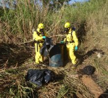 No final da tarde de segunda-feira, dia 11, a guarnição de especialistas em Operações Produtos Perigosos do 2° Batalhão Bombeiro Militar foi acionada para atender uma ocorrência na BR-060, Km 177 a 179, zona rural de Abadia de Goiás. No local, havia 12 tambores de 200 litros contendo resíduos químicos não identificados devido às condições precárias do rótulo.