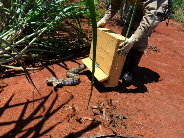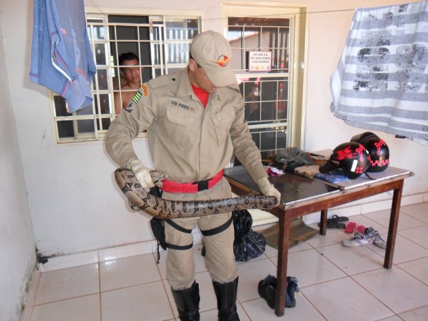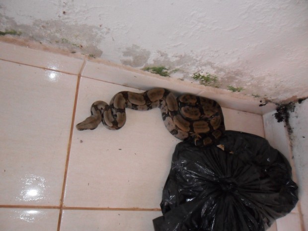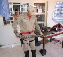 Bombeiros do 6º Destacamento Bombeiro Militar capturam cobra em residência