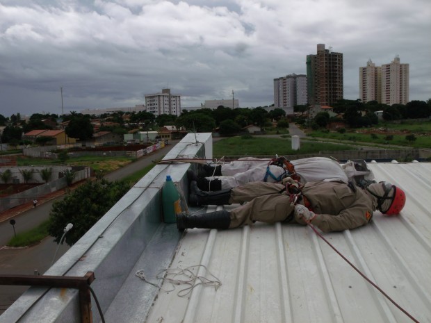 A equipe de busca e salvamento do 8ª BBM, composta pelos militares da ala bravo: Aspirante a Oficial Damasceno; 2º Sargento Silva; Cabo Alberto; e Soldados Matos e Marcelo Santana, foi acionada, na semana passada, para uma ocorrência de captura de marimbondos na Faculdade Getúlio Vargas (FGV) no Parque Amazônia.