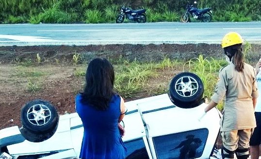 Uma mulher grávida de três meses foi socorrida por Bombeiros do Batalhão de Salvamento em Emergência na tarde de quinta-feira, dia 1º. A vítima era passageira de um carro que capotou na BR-060, após o trevo de Abadia de Goiás. O veículo vinha de Aparecida de Goiânia com destino a Varjão. Quando a viatura de resgate USA-23 chegou ao local, as vítimas já haviam saído do veículo. O condutor não apresentava lesões aparentes e recusou transporte. A grávida foi encaminhada com ferimentos leves ao Hospital Materno Infantil, em Goiânia. Apesar da gravidade do acidente, os ferimentos foram amenizados pelo uso correto do cinto de segurança. A pista estava molhada no momento do acidente.