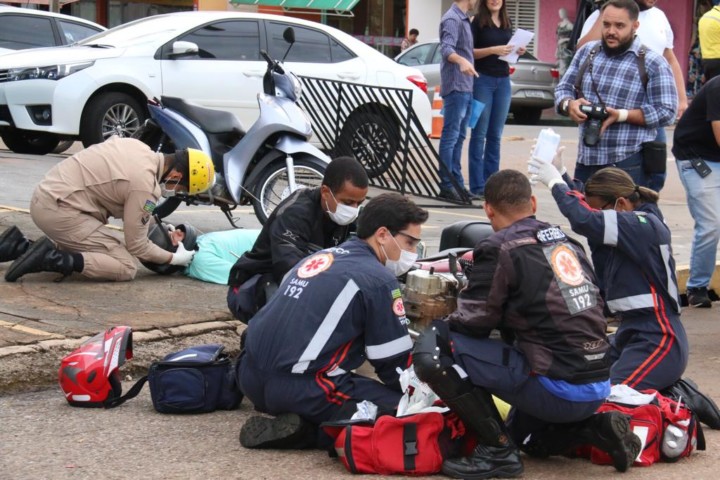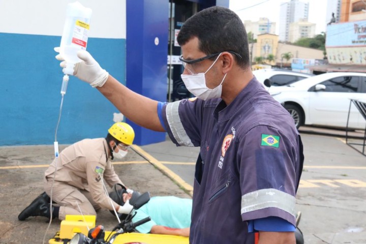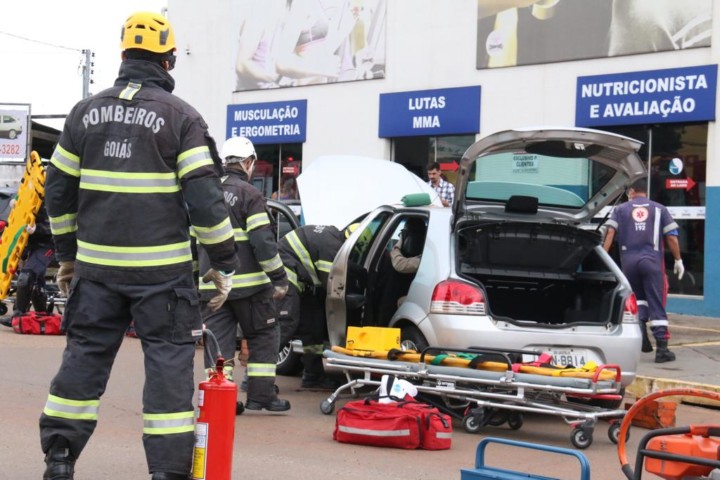 Corpo de Bombeiros Militar do Estado de Goiás em parceria com o SAMU realizou na manhã desta terça-feira, 16, um Simulado Operacional do Serviço Aeromédico em Anápolis. A ação aconteceu na sede do SAMU de Anápolis e contou com a presença do comandante do 3º Comando Regional do Corpo de Bombeiros Militar, Coronel Roberto Machado Borges, do prefeito da cidade, Roberto Naves, além de outras autoridades civis e militares. 22 bombeiros e 12 socorristas do Samu participaram de uma atividade que simulava uma colisão entre um veículo de passeio com motorista e uma moto com dois passageiros. Objetivo era coordenar uma ação de socorro aeromédico conjunta entre as duas instituições. Foram empenhados na simulação o helicóptero e 3 unidades de resgate do CBMGO além de 1 ambulância e 2 motolância do Samu. O foco principal da atividade foi divulgar a parceria entre o CBMGO e o Samu no serviço aeromédico na cidade. Confira fotos:
