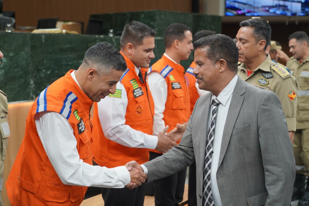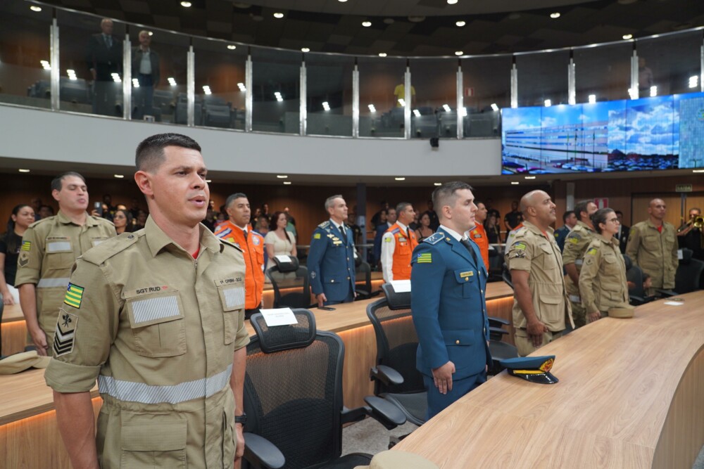 Na noite de quarta-feira, 19 de junho, a Assembleia Legislativa de Goiás foi palco de um momento de reconhecimento aos Bombeiros Militares goianos que trabalharam na tragédia do Rio Grande do Sul. Em uma cerimônia solene, os militares foram agraciados com o Diploma do Mérito Legislativo, em virtude de sua coragem e dedicação exemplares durante as operações de resgate e assistência às vítimas. A homenagem foi presidida pelo Subcomandante Geral do CBMGO, Coronel Pablo Lamaro Frazão, e idealizada pelo deputado estadual Coronel Adailton, ressaltando o compromisso e a valorização dos profissionais que arriscam suas vidas pelo bem-estar da população. Confira fotos: