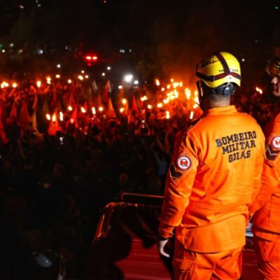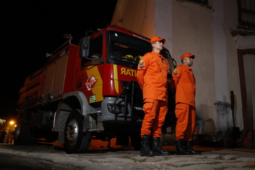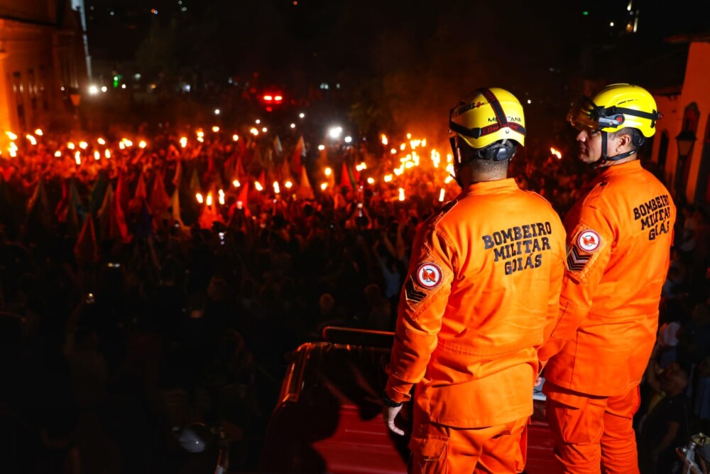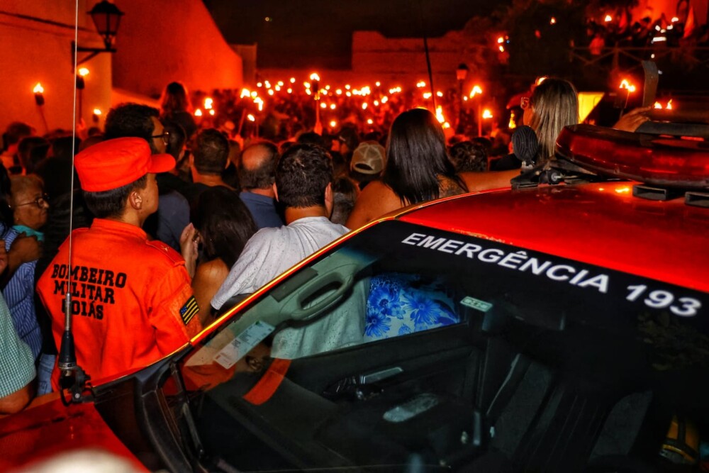 A solenidade contou com a presença do governador do estado de Goiás, Daniel Vilela, além da atuação do Corpo de Bombeiros Militar do Estado de Goiás, que desempenhou papel fundamental na segurança e apoio ao evento, garantindo que a tradição ocorresse de forma organizada e segura para todos os participantes.