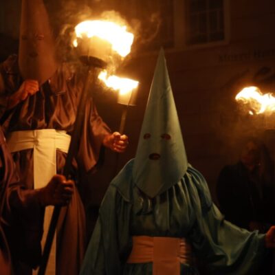 Realizada durante a Semana Santa, a procissão representa a perseguição e prisão de Jesus Cristo, encenada pelos farricocos — figuras encapuzadas que, conduzindo tochas, criam um cenário marcante de fé, tradição e emoção.