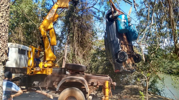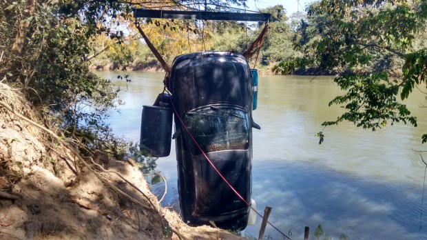 Bombeiros Mergulhadores de Itumbiara retiram veículo no rio Meia Ponte