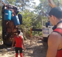 O condutor, ao verificar que o veículo estava prestes a cair acidentalmente no rio conseguiu sair do veículo pulando deste ainda em movimento. O motorista sofreu algumas lesões e escoriações no tórax e abdômen e foi transportado pela UR da 5ª CBM. Confira fotos: