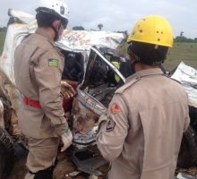 Na última quinta-­feira, 13, o 7o Pelotão Bombeiro Militar, de Iporá, foi acionado para socorrer vítimas de um acidente na BR ­070, envolvendo uma camionete e um caminhão, na qual colidiram frontalmente à cerca de 400 metros do trevo da cidade de Montes Claros de Goiás,  no Distrito de Aparecida do Rio Claro. Na caminhonete estavam três vítimas, uma gravemente ferida resgatada com vida e transportada pelo SAMU e outras duas em óbito presas às ferragens. No caminhão havia duas vítimas que também foram resgatadas gravemente feridas e transportadas para o Hospital Municipal de Montes Claros. Os corpos presos às ferragens foram retirados com o auxilio do desencarcerador. A guarnição que atuou na ocorrência  foram os seguintes Bombeiros Militares:  Tenente Victor, Soldados Eduardo e  Gordo. Confira fotos: