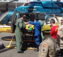 Bombeiros militares apoiam helicóptero da Polícia Rodoviária Federal em ocorrência de transporte