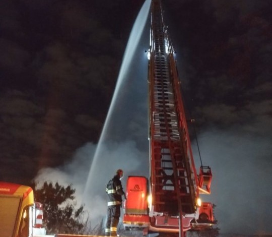 O Corpo de Bombeiros Militar do Estado de Goiás foi acionado, às 19 horas, desta quinta-feira, 30, para combater incêndio em uma empresa de reciclagem, na Chácara São Pedro, em Aparecida de Goiânia. Após algumas explosões, labaredas altas foram vistas pelos solicitantes que acionaram a corporação pelo telefone de emergência 193. Viaturas de combate a incêndio, busca e salvamento, resgate e a auto escada foram empenhadas na operação. O fogo deixou uma pessoas morta e outras cinco feridas que foram socorridos e encaminhados para o hospital com apoio da Polícia Militar e do Samu. O trabalho dos bombeiros foi no sentido de evitar a propagação do incêndio que era de grande proporção. Em cerca de 30 minutos, as chamas estavam confinadas e as equipes trabalharam com objetivo de debelar o sinistro.  Ao todo trabalharam na operação 49 bombeiros militares em 19 viaturas. Confira fotos: