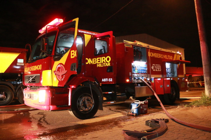 Bombeiros Militares combatem incêndio em empresa de Aparecida de Goiânia