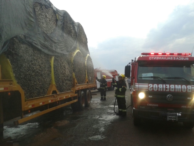 Bombeiros Militares combatem princípio de incêndio em carreta de algodão em Luziânia
