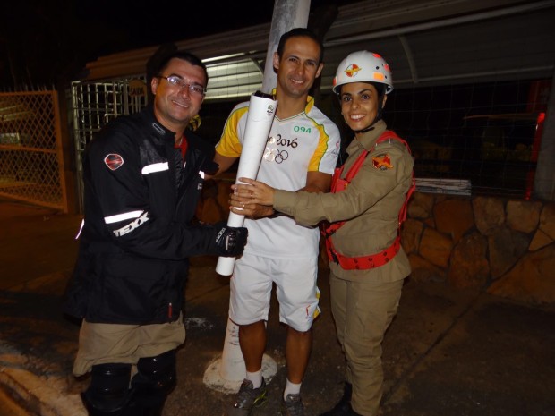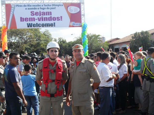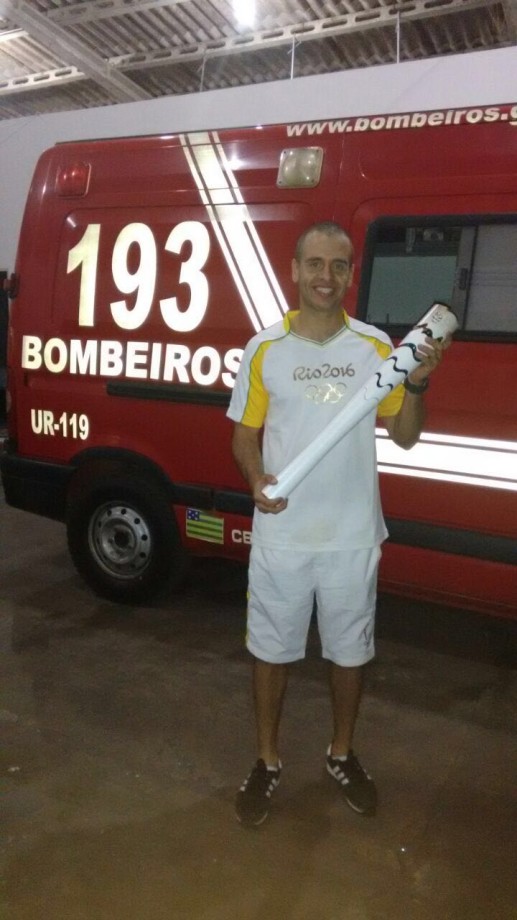 Dois militares do Corpo de Bombeiros Militar do Estado de Goiás (CBMGO) tiveram a honra de conduzir a Tocha Olímpica durante sua passagem por Goiás. Subcomandante do 9º Batalhão Bombeiro Militar em Caldas Novas, o Major Tiago Dias Coelho foi um dos condutores da Tocha Olímpica na cidade turística goiana. O militar foi selecionado para a honraria devido sua participação como atleta CBMGO em edições dos Jogos Mundiais de Polícia e Bombeiros.