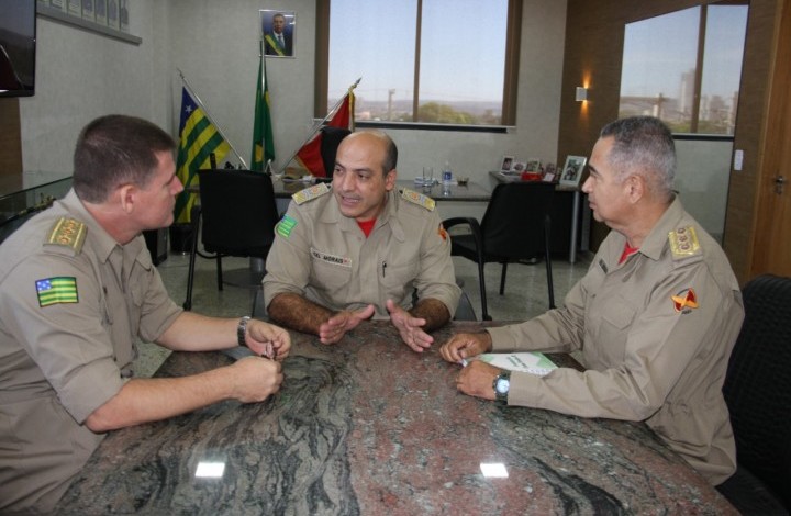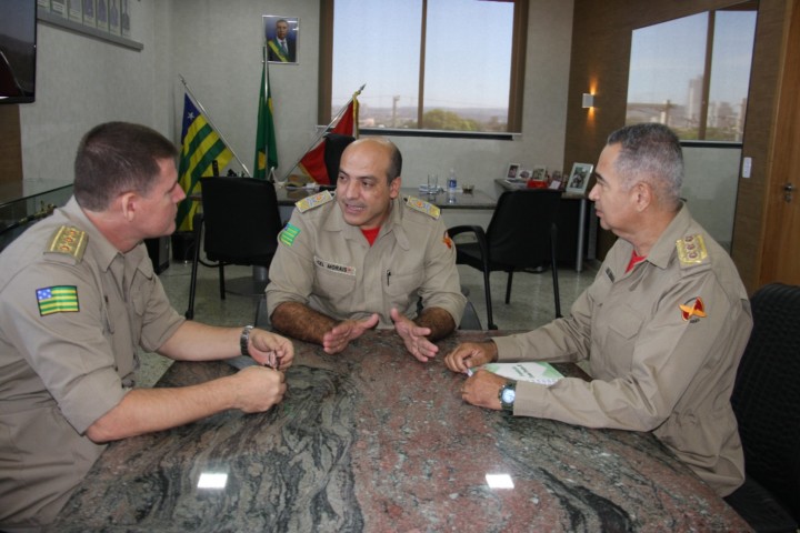 Nesta terça-feira, 19, o Comandante Geral do Corpo de Bombeiros Militar do Estado de Goiás (CBMGO), Coronel Márcio André de Morais, o Subcomandante Geral, Coronel Sérgio Ribeiro Lopes e o Comandante do Comando de Gestão e Finanças, Coronel Esmeraldino Jacinto de Lemos realizaram uma reunião no Gabinete do Comando para tratar das diárias dos bombeiros militares que estarão empenhados na 44ª Operação Férias 2018.