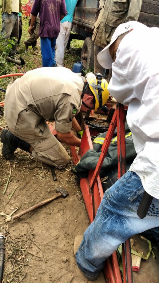 Bombeiros Militares de Formosa resgatam trabalhador preso em máquina agrícola