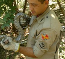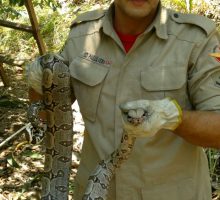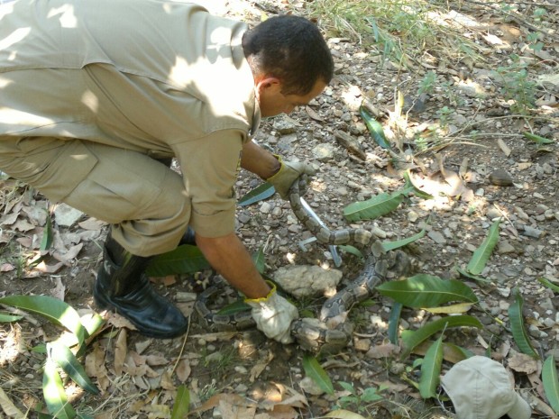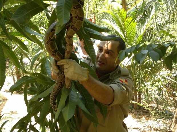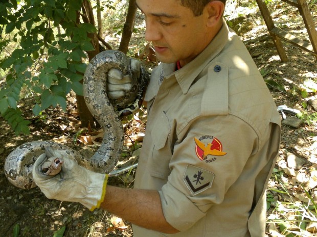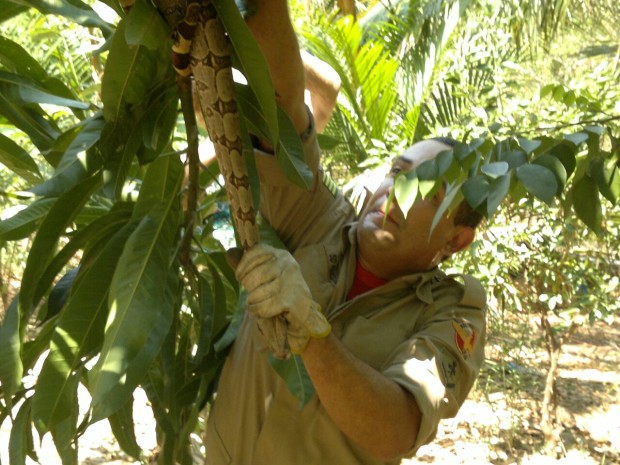 Na manhã da última segunda-feira, 29, a guarnição de busca e salvamento da Cidade de Goiás foi acionada para capturar uma jiboia em cima de um pé de manga numa chácara onde morava um casal de idosos.