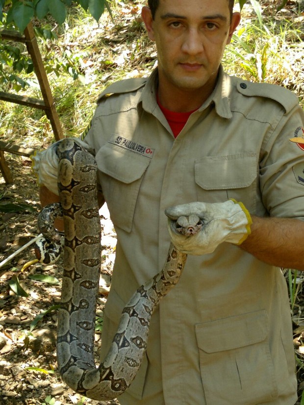 A cobra foi capturada pela Equipe de Bombeiros Militares sem ferimentos. Confira fotos: