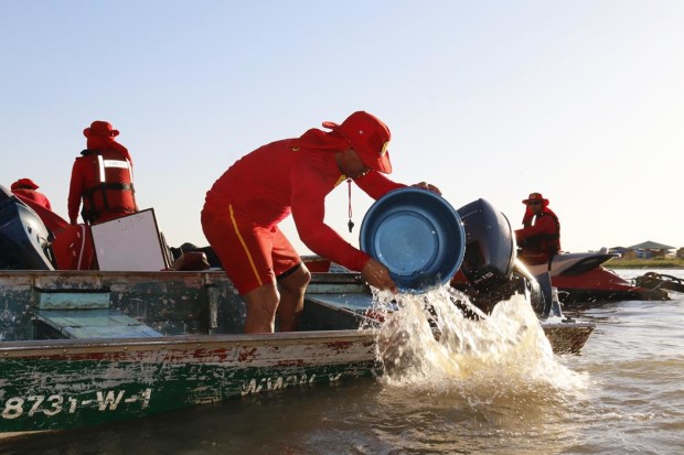 Bombeiros Militares da Operação Férias Turista Seguro resgatam embarcação em Aruanã