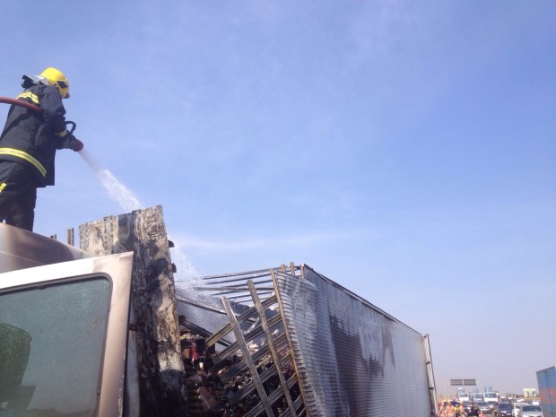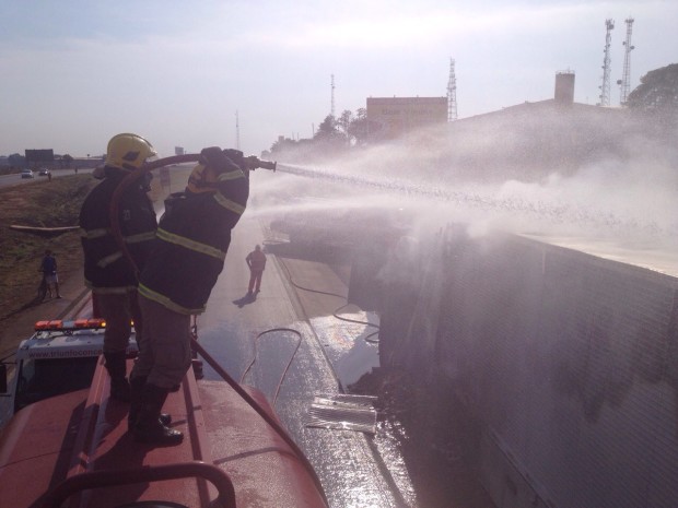 Na manhã do dia 20, Bombeiros de Anápolis foram acionados para combater incêndio em um caminhão que transportava  carga de secos e molhados na BR-060 no perímetro urbano da cidade. A equipe que atendeu a ocorrência foi composta  pelas guarnições do  AT-04 , ABT-06 , UR-116,  ASA-51 e av-309.  Não houve vítimas. Confira fotos: