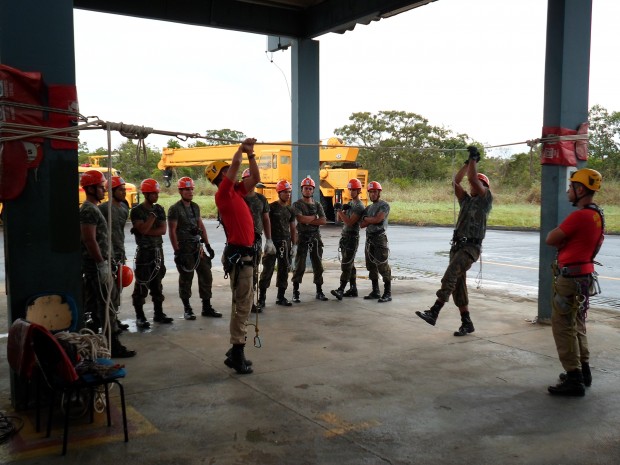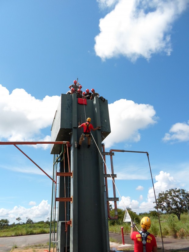 Bombeiros militares do 3° Batalhão Bombeiro Militar, especialistas em Salvamento em Altura, ministraram instrução de Técnicas Verticais aos militares do Pelotão de Combate a Incêndio da Base Aérea de Anápolis – BAAN, nos dias 10, 11 e 12 de março de 2014.