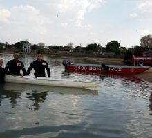 Bombeiros Militares de Aruanã e de Anápolis resgatam caiaque no Lago dos Tigres em Britânia