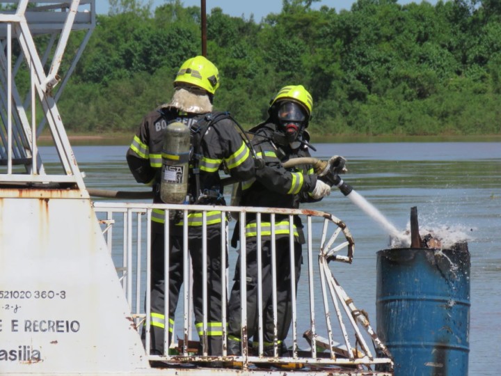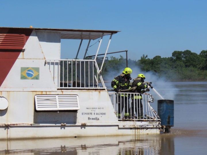 O Corpo de Bombeiros Militar do Estado de Goiás, em Aruanã, realizaram na manhã desta segunda-feira, 23, um simulado operacional de incêndio em uma embarcação de grande porte, com uma vítima inconsciente.