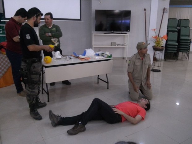 O 11º Destacamento Bombeiro Militar, de Aruanã, realizou, na semana passada, treinamento de primeiros socorros para Policiais Civis e servidores da Secretaria do Meio Ambiente e Recursos Hídricos (Semarh). Na instrução, foram abordados temas como as técnicas de atendimento pré-hospitalar, bem como exposição de equipamentos utilizados e orientação quanto a maneira correta de imobilizar vítimas de traumas. A instrução teve o objetivo de dar noções básicas aos servidores na atuação em urgências e emergência, minimizando consequências em caso de acidentes. Os Soldados Orlando e J. Santos foram os responsáveis pela instrução.