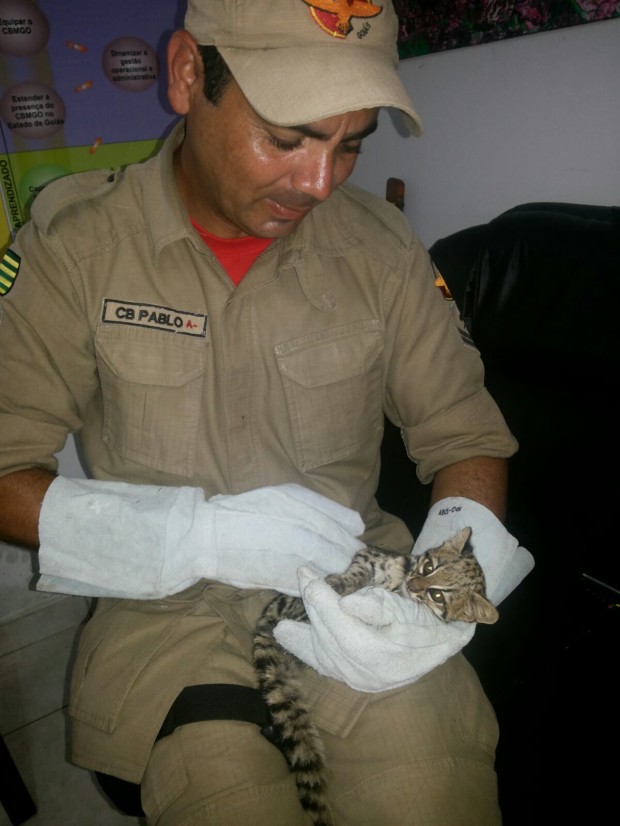 Bombeiros Militares de Aruanã resgatam filhote de jaguatirica em Mozarlândia