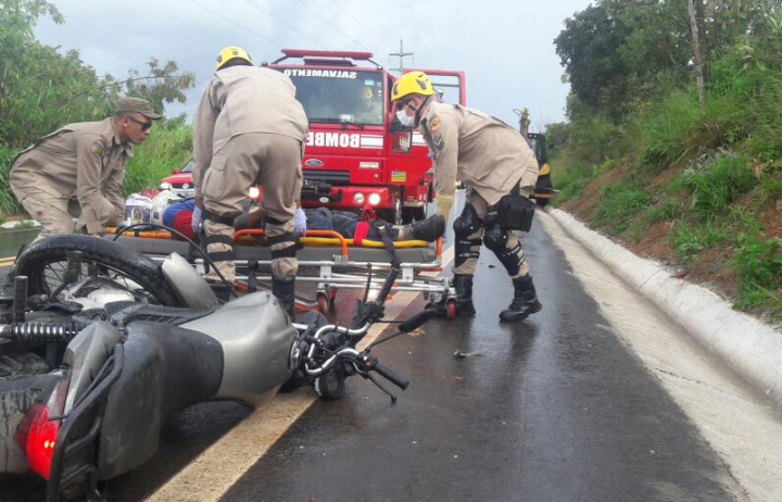 Na tarde desta quinta-feira, 8, equipes do Corpo de Bombeiros Militar, em Caldas Novas, atenderam grave acidente de trânsito na GO-139, colisão entre moto e maquina retroescavadeira.