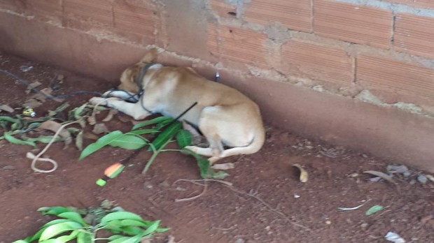 Na manhã de segunda-feira, 9, Bombeiros Militares de Caldas Novas foram acionados para uma ocorrência de um animal doméstico ferido por um objeto transfixado. Uma moradora avistou o animal ferido na frente da casa dela, no Jardim Esmeralda, e acionou o Corpo de Bombeiros. Assim que viu o animal com a flecha na região das costas, a mulher decidiu amarrá-lo com uma corda em uma árvore e pediu ajuda.