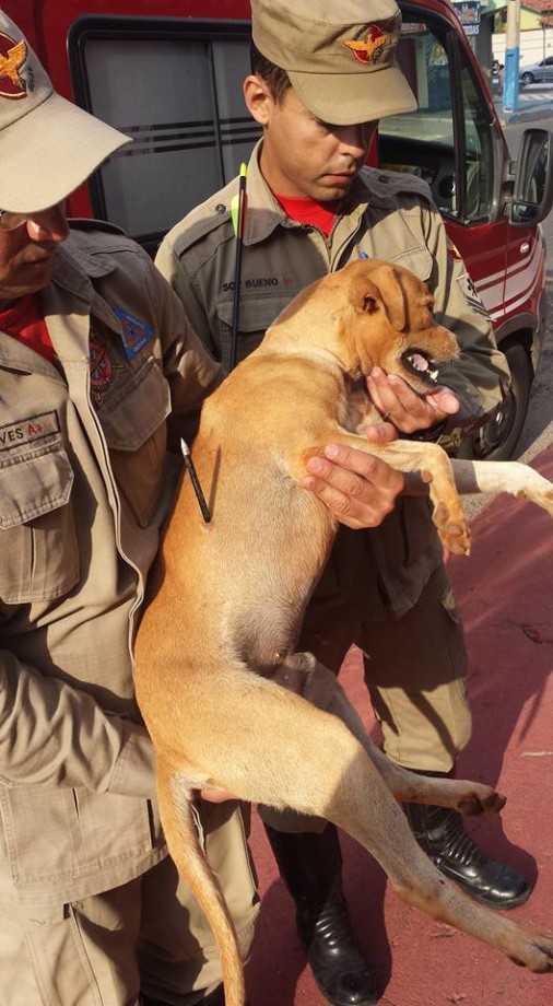 Bombeiros Militares de Caldas Novas socorrem cachorro ferido por uma flecha