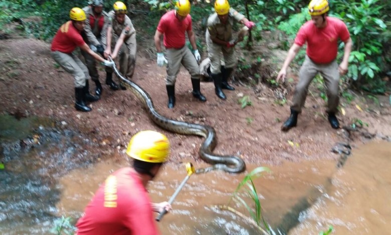 Na tarde desta sexta-feira, 17, a equipe do Corpo de Bombeiros, em Caldas Novas, foi acionada para capturar uma cobra sucuri, de aproximadamente 6 metros, em um condomínio próximo a algumas casas e prédios.