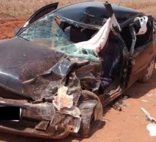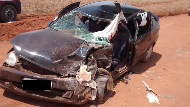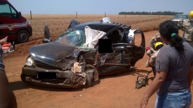 A colisão frontal ocorreu numa estrada não pavimentada na zona rural à 10 km da cidade e fez três vítimas, duas com escoriações leves e uma em estado grave presa às ferragens. As vítimas foram encaminhadas ao Hospital Municipal da Cidade. Atuaram na ocorrência três viaturas e seis Bombeiros Militares. Confira fotos: