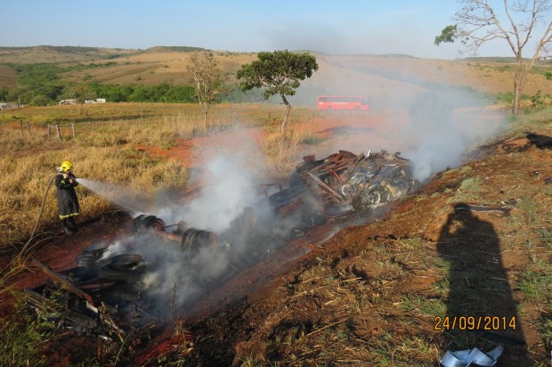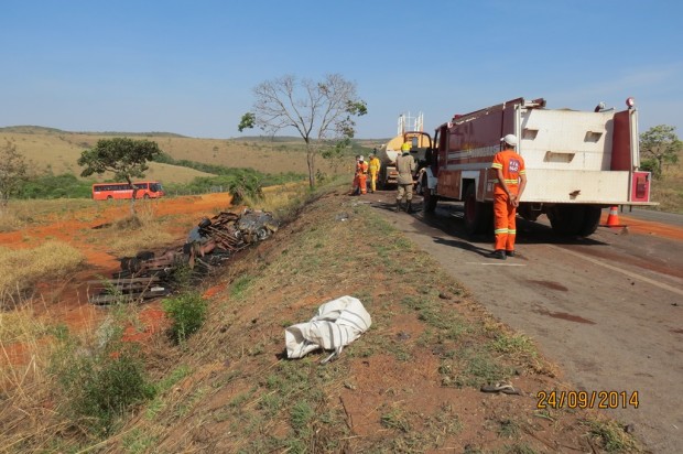 Na manhã desta quarta-feira, 24, o Corpo de Bombeiros Militar de Cristalina (2º PBM) foi acionado para atender um grave acidente de trânsito envolvendo dois veículos de passeio e um caminhão. A colisão frontal, seguida de tombamento e incêndio, ocorreu no Km 137 da BR-040 entre Cristalina – GO e Paracatu – MG fez onze vítimas. Destas, cinco com escoriações diversas foram socorridas pelos Bombeiros, três sem grandes ferimentos socorridas por terceiros e três vítimas carbonizadas ficaram presas entre as ferragens. Três viaturas e cinco Militares do Corpo de Bombeiros atenderam a ocorrência e encaminharam as vítimas ao Hospital Municipal da cidade.