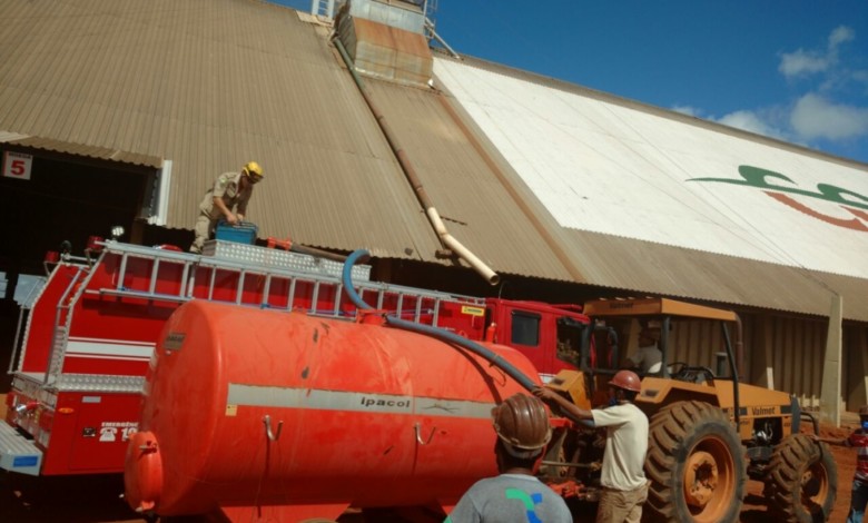 A Companhia Independente Bombeiro Militar, em Cristalina, foi acionada para  uma ocorrência de incêndio em um silo repleto de grãos de milho.