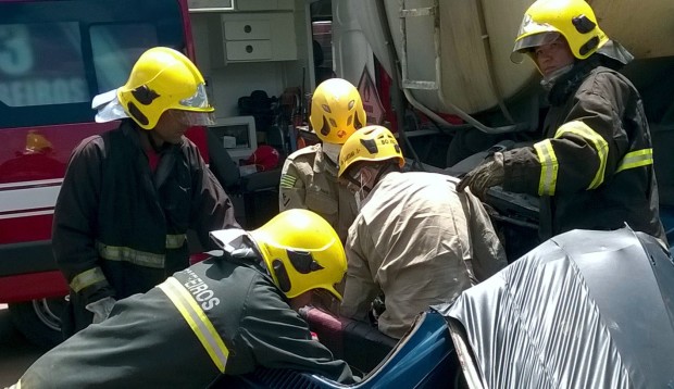 No local, a Equipe de Bombeiros Militares isolaram a área para prevenir focos de incêndio e contaminação, realizaram os procedimentos de desencarceramento da vítima e o resgate pré-hospitalar. Em pouco mais de 30 minutos de operação, as equipes conseguiram retirar, com vida, o homem que estava no veículo de passeio. Confira fotos: