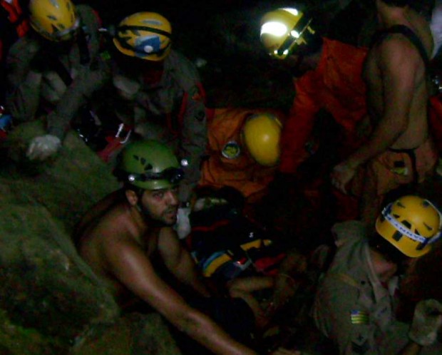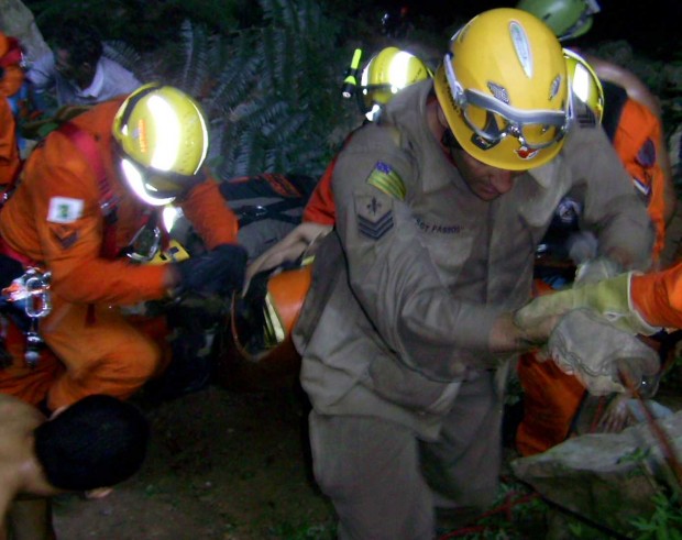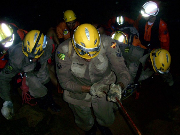 Os outros 30 membros do grupo permaneciam do outro lado do lago da caverna aguardando o resgate e a orientação do Corpo de Bombeiros para que se movimentassem e se retirassem com segurança do local. A equipe do Corpo de Bombeiros fez os procedimentos de primeiros socorros na jovem e as imobilizações que o salvamento exigia e, ao começarem a movimentá-la em direção ao lado externo da caverna, receberam o apoio de guarnições do Corpo de Bombeiros do Distrito Federal que auxiliaram na retirada e movimentaram a vitima de helicóptero, para o Hospital de Base em Brasília. A ocorrência iniciou-se por volta das 14h30 e durou até 20h30 e, além dos Corpos de Bombeiros de Goiás e do Distrito Federal, contou com o apoio do SAMU e do Espeleogrupo de Brasília. Confira as fotos:
