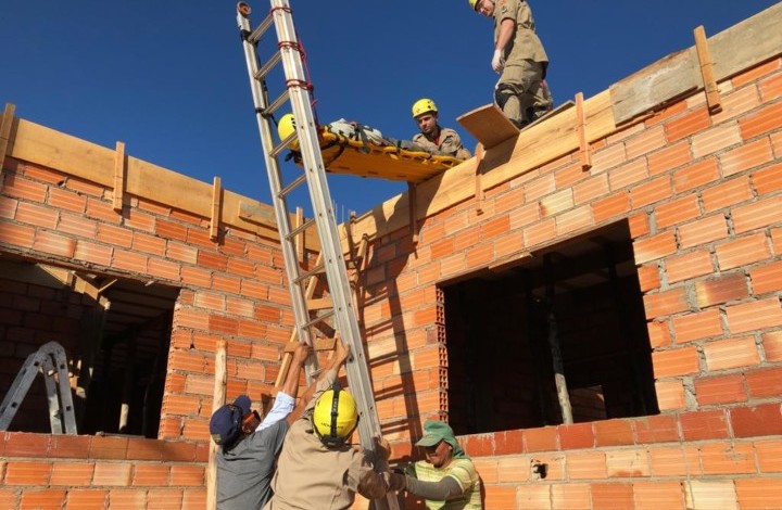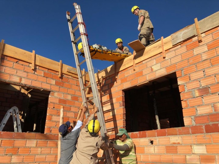 Bombeiros Militares de Goianésia foram acionados na manhã desta quarta-feira, 7, para resgatar um trabalhador da construção civil. A vítima estava no primeiro pavimento da casa em construção, quando sofreu queda da estrutura de preparação da laje. A equipe do @cbmgo o resgatou consciente, com suspeita de lesão na clavícula, região pélvica, e fratura de costela. Após estabilização da vítima em prancha longa, amarração da prancha na escada, foi realizada a descida com a utilização da técnica de escada rebatida. O trabalhador foi encaminhado para unidade de saúde.