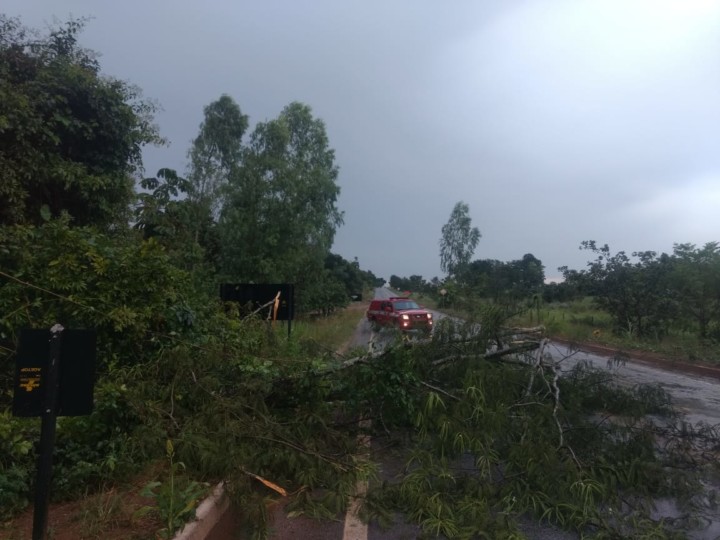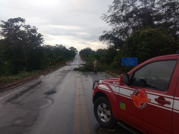 Na tarde de segunda-feira, 4, o Corpo de Bombeiros Militar do Estado de Goiás (CBMGO), em Goianésia, foi acionado para uma ocorrência de retirada de árvores que caíram na GO-080, próximo a Barra Alto, após uma chuva com ventos fortes na região. A equipe de Salvamento do CBMGO realizou a retirada dos galhos da pista após o corte. Confira fotos: