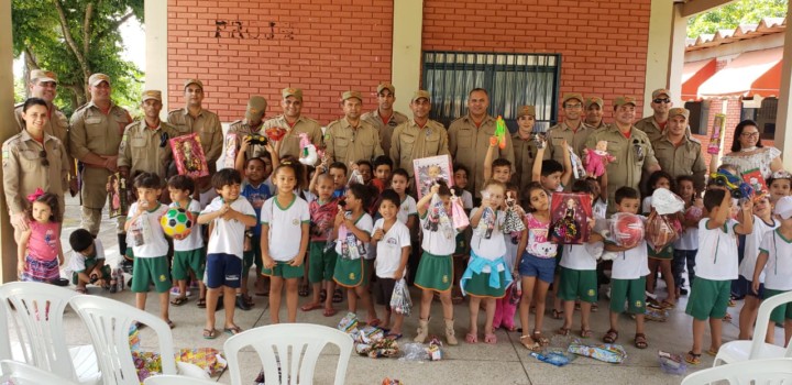 Na tarde desta terça-feira, 11, o Corpo de Bombeiros Militar do Estado de Goiás, em Goianésia, realizou visita em uma escola pública do município para confraternizar com as crianças e entregar presentes feitos pelos Bombeiros Militares da região.