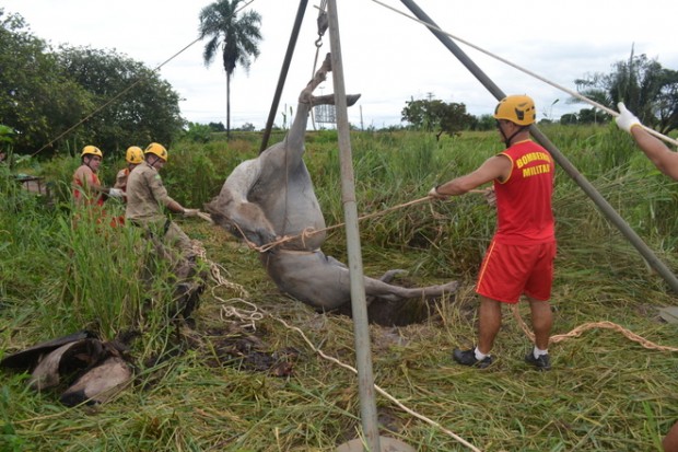 Na manhã de terça-feira, dia 29, Bombeiros militares da 13ª CIBM, em Goianésia, realizaram a retirada de um animal de uma fossa de aproximadamente três metros de profundidade. A ocorrência foi no Parque da Lagoa Otávio Lage em uma chácara às margens do início da Rodovia Goianésia – Barro Alto. Foi utilizado o tripé de salvamento e outros materiais de salvamento terrestre. Após o animal ser retirado sem ferimentos, ele foi entregue ao responsável pelo local. O Corpo de Bombeiros recomenda a todos que possuem fossas e cisternas abertas que realizem o fechamento delas com material resistente de modo a impedir a queda de animais e até mesmo pessoas.