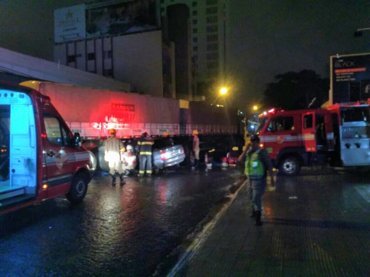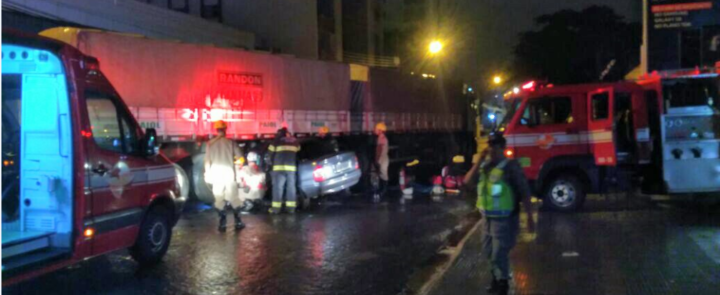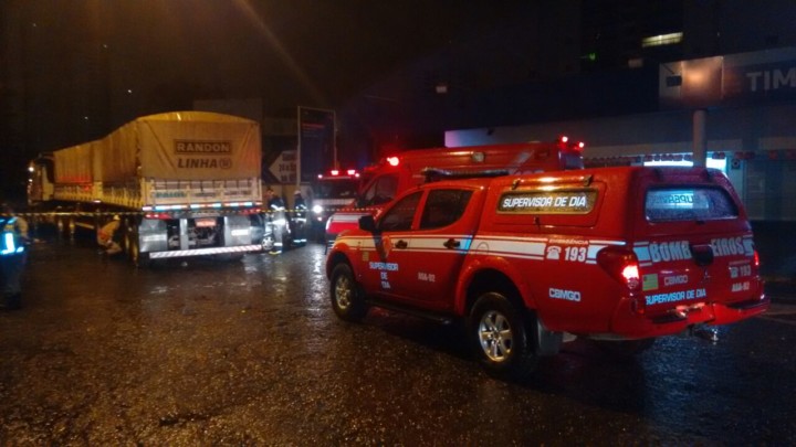 Bombeiros Militares de Goiânia atuam em acidente envolvendo caminhão e carro no setor Marista