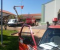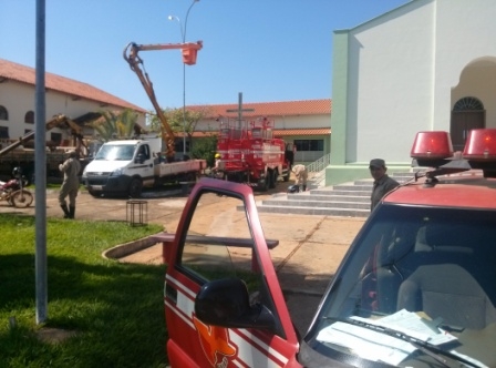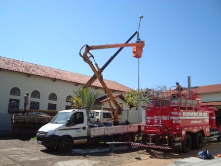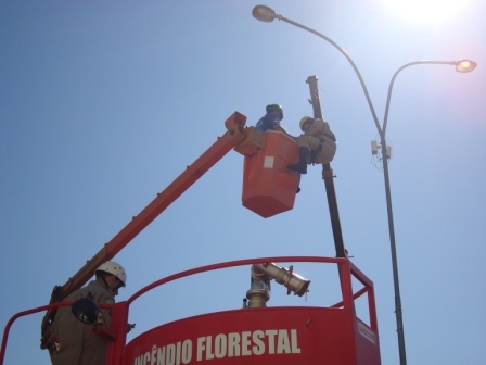 Na segunda-feira, dia 12, o 7º Pelotão Bombeiro Militar, em Iporá, socorreu um homem que ficou suspenso em uma auto plataforma quando realizava manutenção em luminárias públicas na Praça da Igreja, localizada na Avenida Goiás, em Iporá.