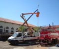 A auto plataforma apresentou uma pane em seu sistema hidráulico deixando o trabalhador em altura elevada.