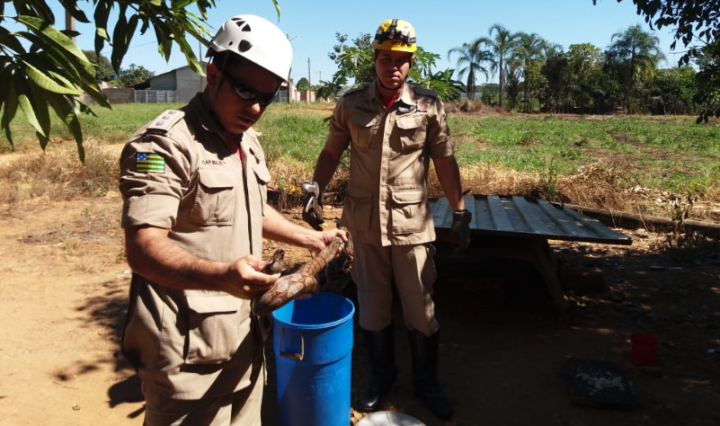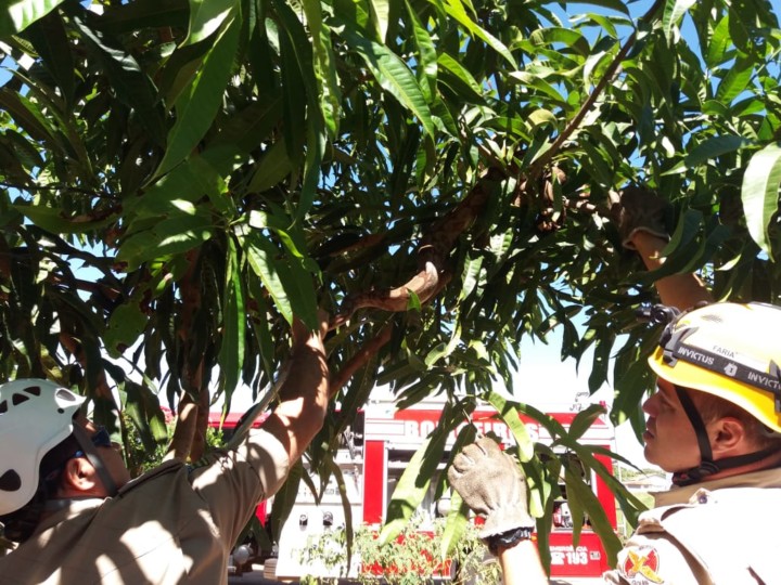 O Corpo de Bombeiros Militar do Estado de Goiás, em Itaberaí, foi acionado no final da manhã desta segunda-feira, 28, para realizar a captura de uma cobra, jiboia, em uma árvore na zona urbana.