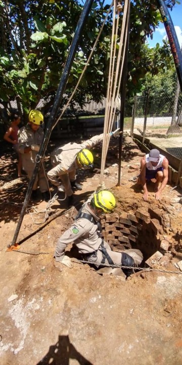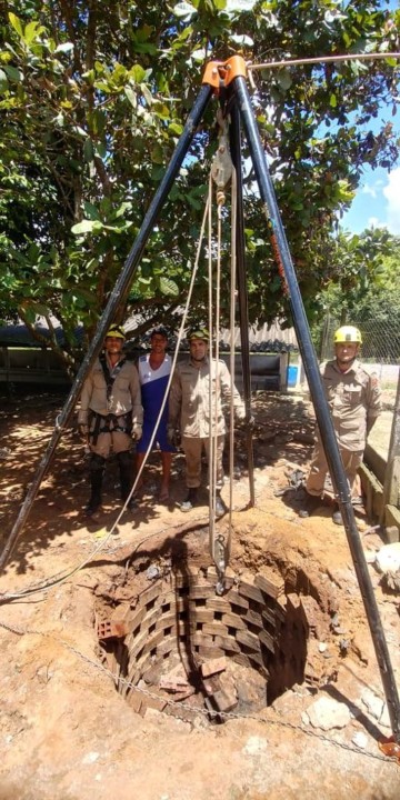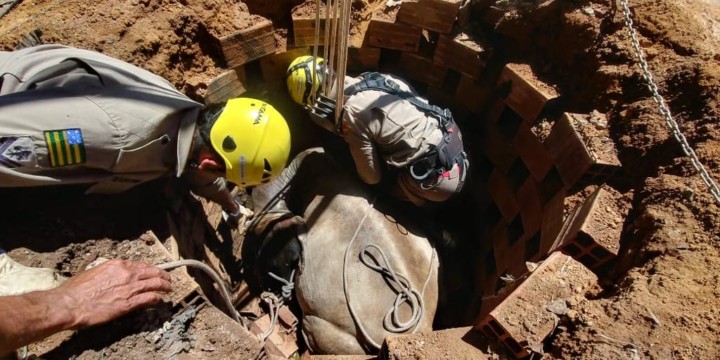 Na manhã da última quarta-feira,13, o Corpo de Bombeiros Militar do Estado de Goiás (CBMGO) foi acionado para uma ocorrência de resgate de uma vaca em uma fossa. No local, a equipe do CBMGO verificou que o animal estava em uma fossa, com profundidade aproximada de um metro e meio. Utilizando o sistema de tripé e roldanas o animal foi retirado e entregue ao seu proprietário, com vida e sem ferimentos. Confira fotos: