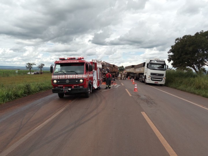 O 6º Batalhão Bombeiro Militar, de Itumbiara, foi acionado na sexta-feira, 13, para socorrer vítimas de uma colisão frontal entre duas carretas na BR-452, próximo a Bom Jesus. Um caminhão Volvo bateu de frente com uma Scânia. Os dois motoristas dos veículos não resistiram aos ferimentos e foram à óbito. A equipe realizou o desencarceramento dos corpos. Além de garantir a segurança do cenário, a equipe do Corpo de Bombeiros Militar fez a limpeza da pista que ficou suja com óleo e prestou auxílio à PRF e à Polícia Técnico Científica, que ficou com a guarda dos corpos.