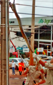 Início/Bombeiros Militares de Itumbiara capturam uma cobra sucuri em um poste de eletricidade/cobra cobra