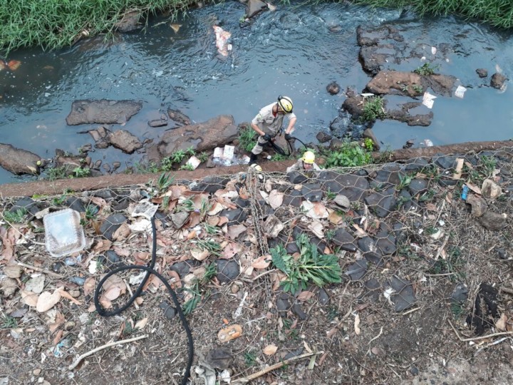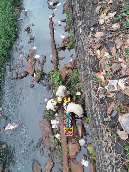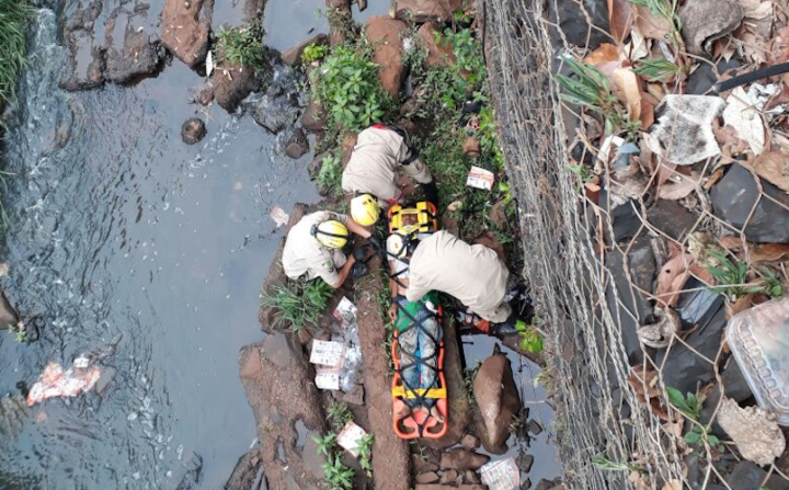 Bombeiros Militares de Itumbiara resgatam vítima de queda em córrego